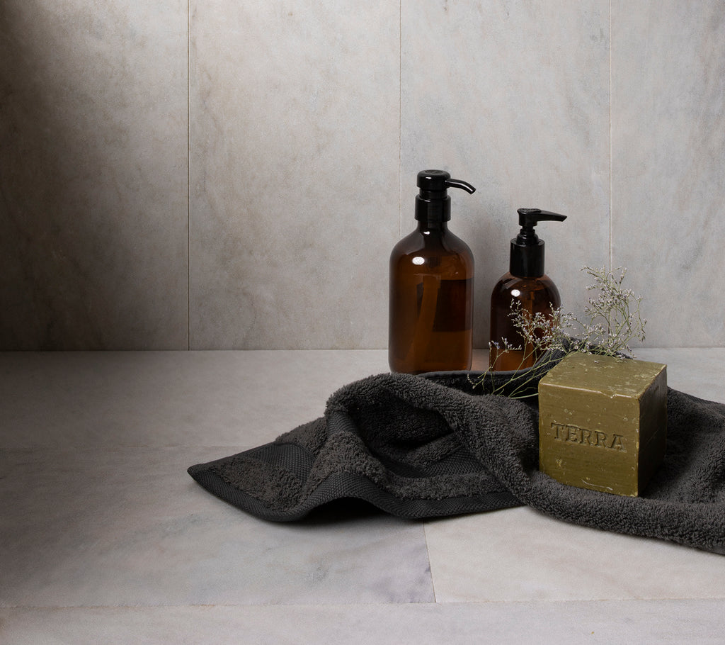 To use marble with a lively marbling on both floors and walls can be too much if the details do not really fit. In these bathrooms, designed by the Australian architectural firm Coy Yiontis, all details are well thought through to give harmony to the rooms. For an example, note the fall to the floor drain in the shower - a smart way to be able to use the same size of tiles on both walls and floors. Another important detail is the recessed shelf that creates a niche in the wall. Such things contributes to the solid and undisturbed feelings.