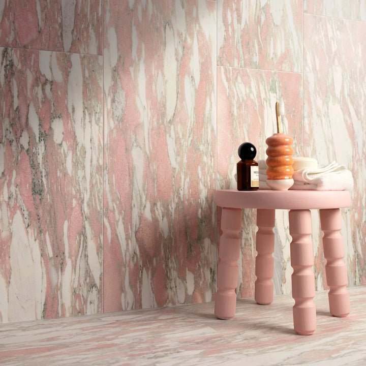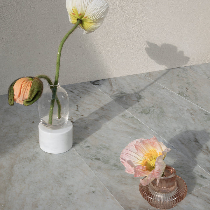 Marble is a classic and durable natural stone that often brings elegant environments to mind. We have a fantastic selection of Scandinavian marble, in shades ranging from deep forest green, to soothing blue, to soft white and pink. It can be laid both indoors and outdoors, on floors and walls in bathrooms, kitchens or hallways, etc. Below, you can find inspiration and read about our beautiful marble varieties.